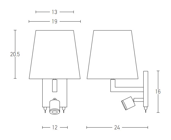 Широчина: Base: 12 cm L24, Shade: 19×13 cm