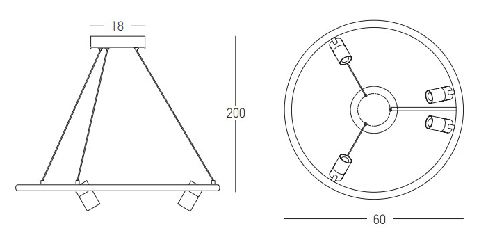 | Диаметър: | Ring 60cm | Spotsτ 4.5 x H: 8cm | Base 18 x H: 3.5cm |
