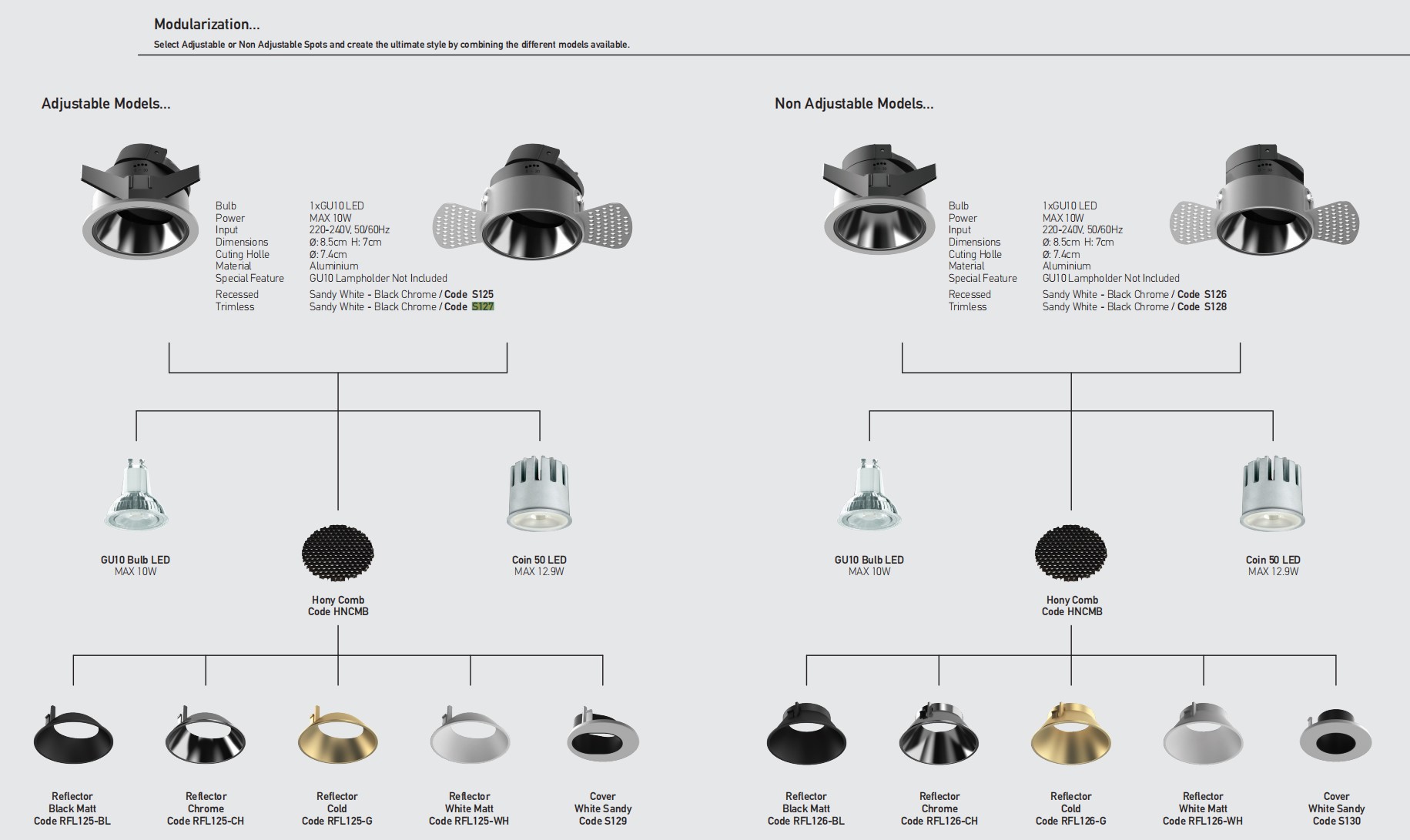 | Лампа: | 1xGU10 Led | MAX 10W || Coin50 Led | MAX 12.9W | Lampholder Not Included |